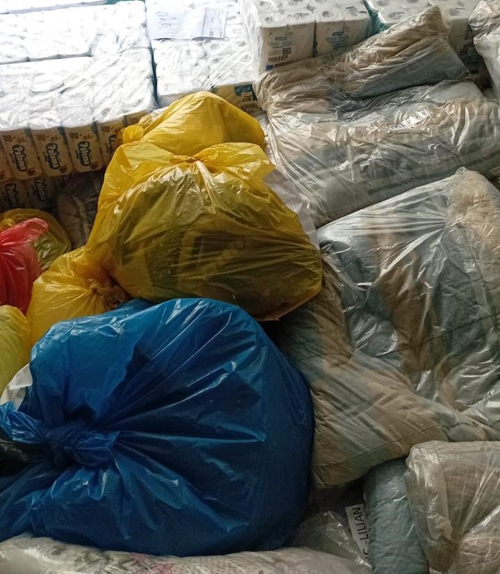 Grande volume de papel higiênico, item essencial para o dia a dia das famílias desalojadas;